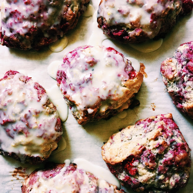 Petite Raspberry Scones with Fresh Lemon Glaze |