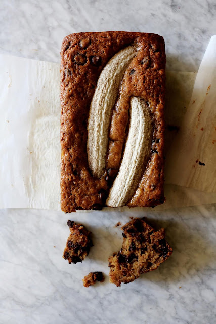 - Chocolate. I am a card-carrying chocolate whore. If I could bathe in a pool of it nightly, I would. But, I realize some people, like my dad, would just rather I left it out of everything I bake. That’s fair. So, dont feel tethered to the 1 1/2 cups of chocolate I throw in here. Get frisky and throw in toasted + chopped pecans or nothing at all. This is your banana bread. OWN IT.